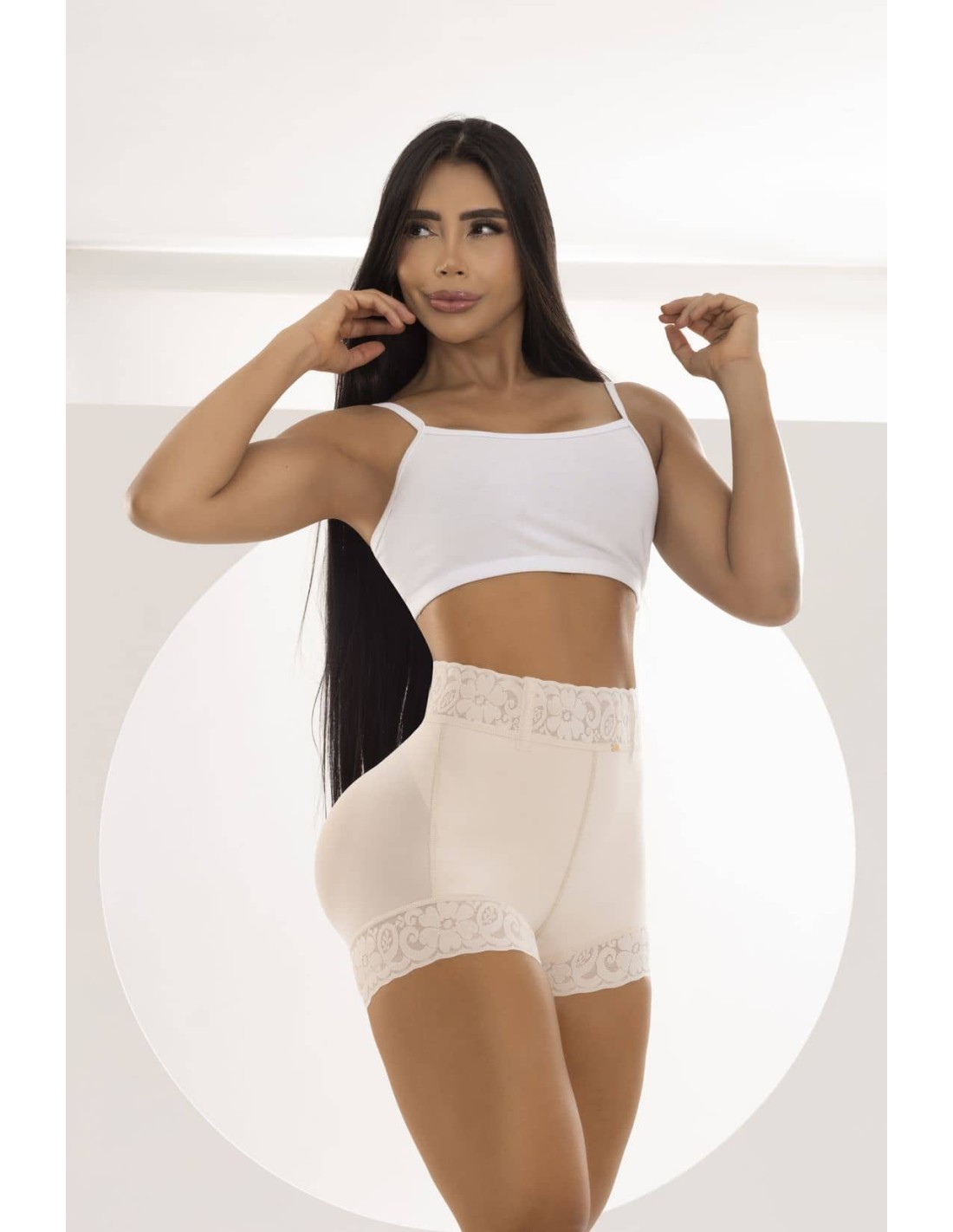 Esta faja se adapta a tu cuerpo sin apretar, gracias a su tejido elástico de alta compresión. La zona trasera está confeccionada en malla delicada que realza los glúteos sin marcarlos, permitiendo que tu figura se vea armoniosa y natural.