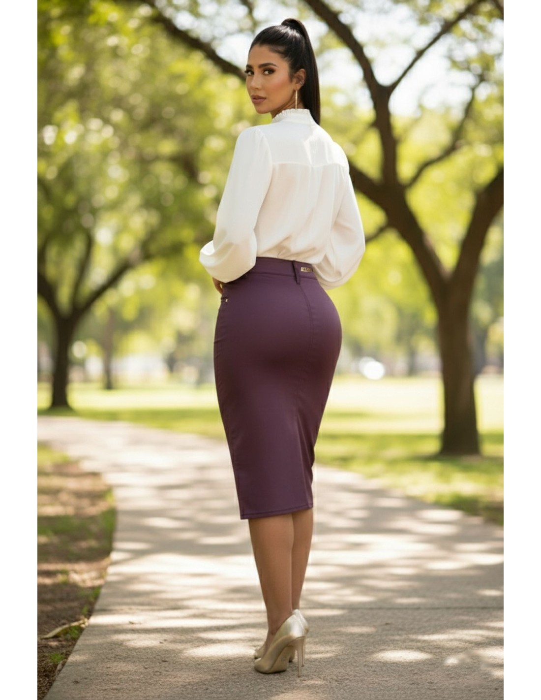Para uma aparência elegante, misture esta saia de efeito de couro com uma blusa preta apertada e saltos em tons de metal ou nude. Para uma aparência mais casual, use -a com uma blusa e botas soltas. Adicione acessórios dourados para um toque sofisticado.
